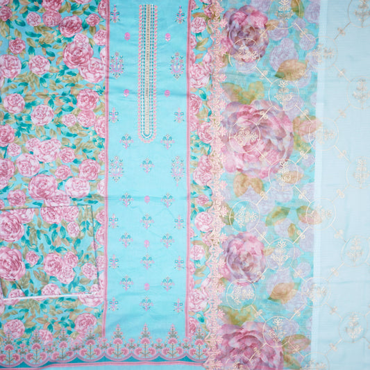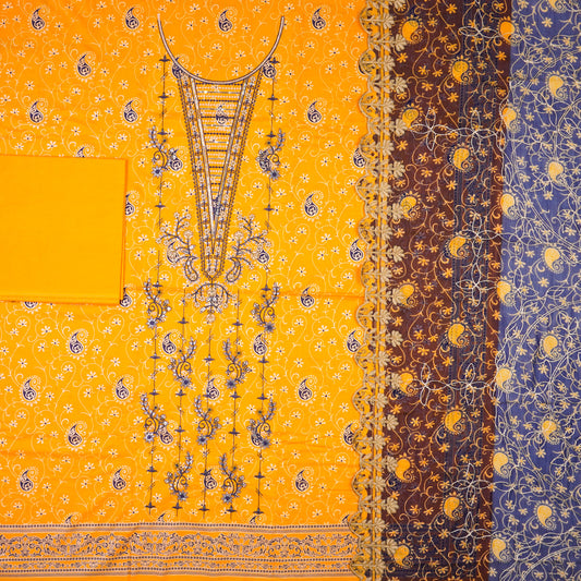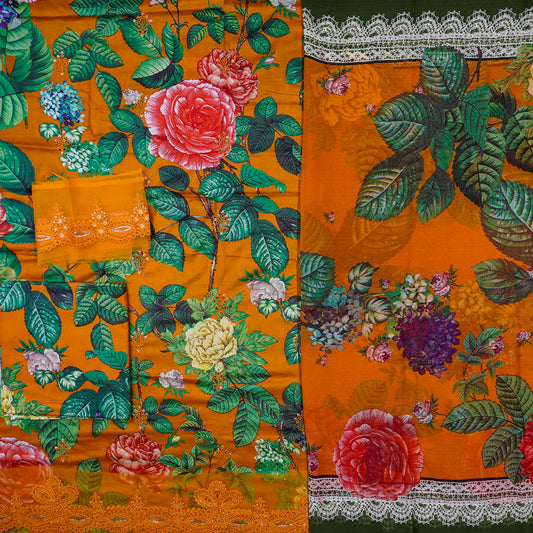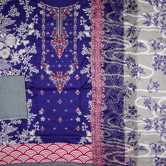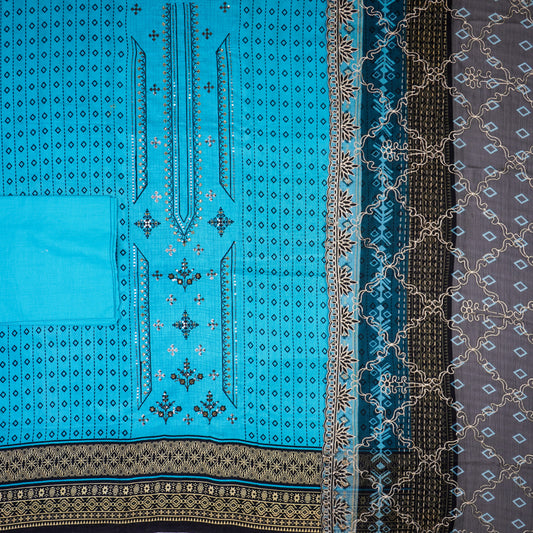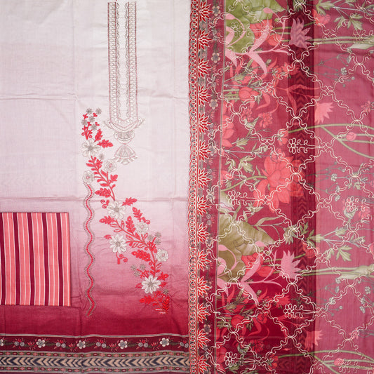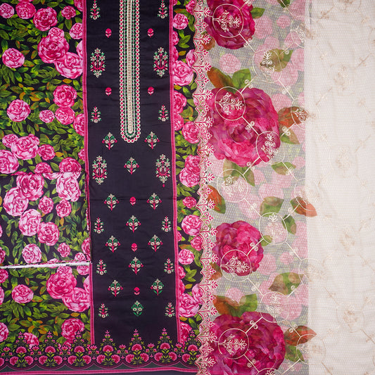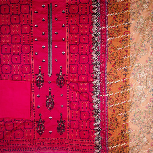 3 Pc Lawn with patches & Chiffon Embroidered Dupatta Un-stitched-UN2731