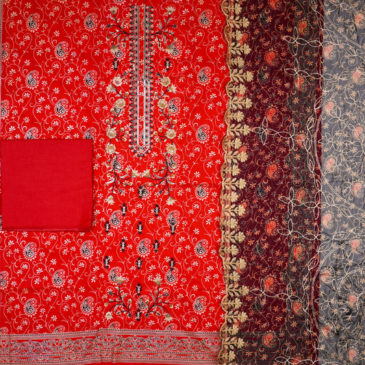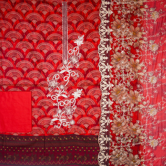3 Pc Lawn Embroidered Chiffon Dupatta Cutwork Un-stitched-UN2613c
