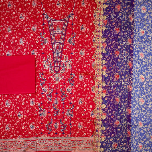 3 Pc Lawn Embroidered Chiffon Dupatta Cutwork Un-stitched-UN2610a