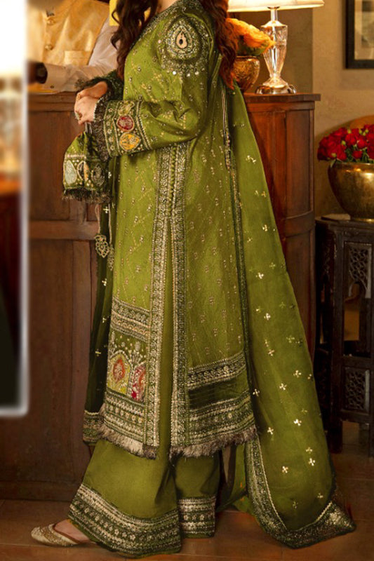 Qalamkar 3 Pc Masoori Mehendi Green Embellished Embroidered Dress Un-stitched-UN2739